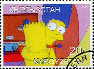 - Kirguistán (2000): Una de las primeras administraciones postales en reconocer el potencial filatélico de la familia amarilla fue Kirguistán. Su sello de 20 céntimos (20c) emitido en el año 2000 presenta a Marge y Bart, capturando la dinámica madre-hijo que es central en muchas de las historias de la serie.