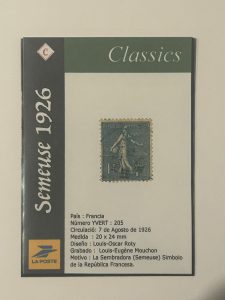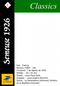 La Sembradora (Semeuse en francés) , un sello icónico de francia que ha estado en emision por un período de mas de 30 años en diferentes formatos filatélicos y aún vigente hoy en dia en monedas francesas, es un símbolo de los valores de la república francesa, «Legalite, Egalité, Fraternité», legalidad, igualdad y fraternidad.